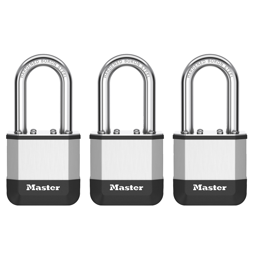 Laminated Padlock Master Lock Elite™ Heavy Duty Lock with Hardened Boron Steel Shackle, 1-3/4 in. (44mm) wide, 1-1/2 in. (38mm) ShackleFeatures