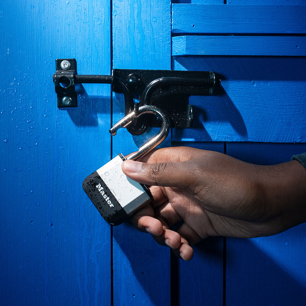 - Dual Ball-Bearing Locking Mechanism – Securely locks the shackle in place to defend outdoor lock against prying and hammering attacks.