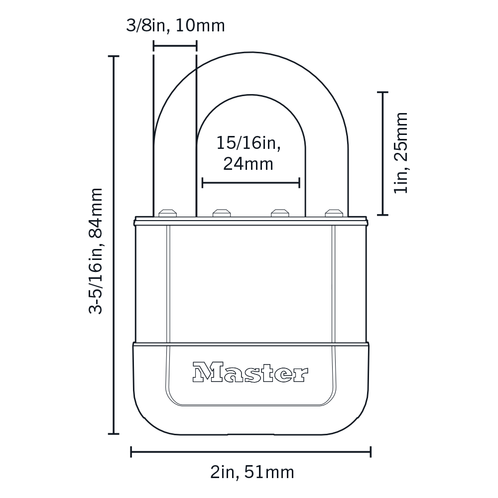 Laminated Padlock Master Lock Elite™ Heavy Duty Lock with Hardened Boron Steel Shackle, 2 in. (51mm) wide, 1 in. (25mm) ShackleFeatures
