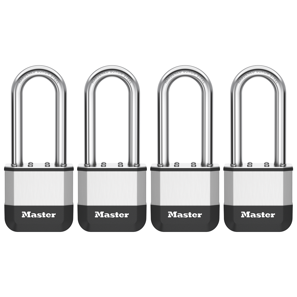 Laminated Padlock Master Lock Elite™ Heavy Duty Lock with Hardened Boron Steel Shackle, 2 in. (51mm) wide, 2-1/2 in. (64mm) ShackleFeatures